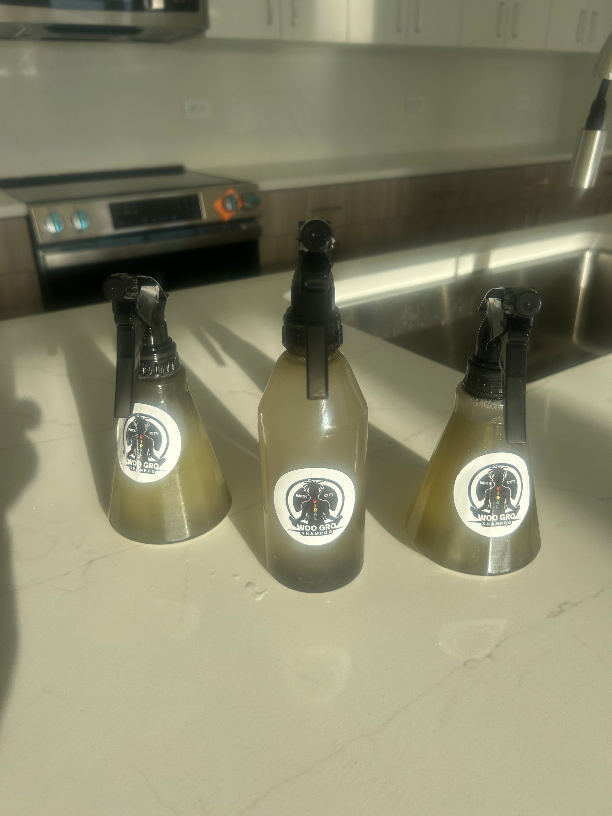 Woo Gro Shampoo strengthen & gently cleanse to protect and restore natural shine, body and bounce. Remove excess build-up without striping natural oils. Stimulate follicles and soothe scalp.